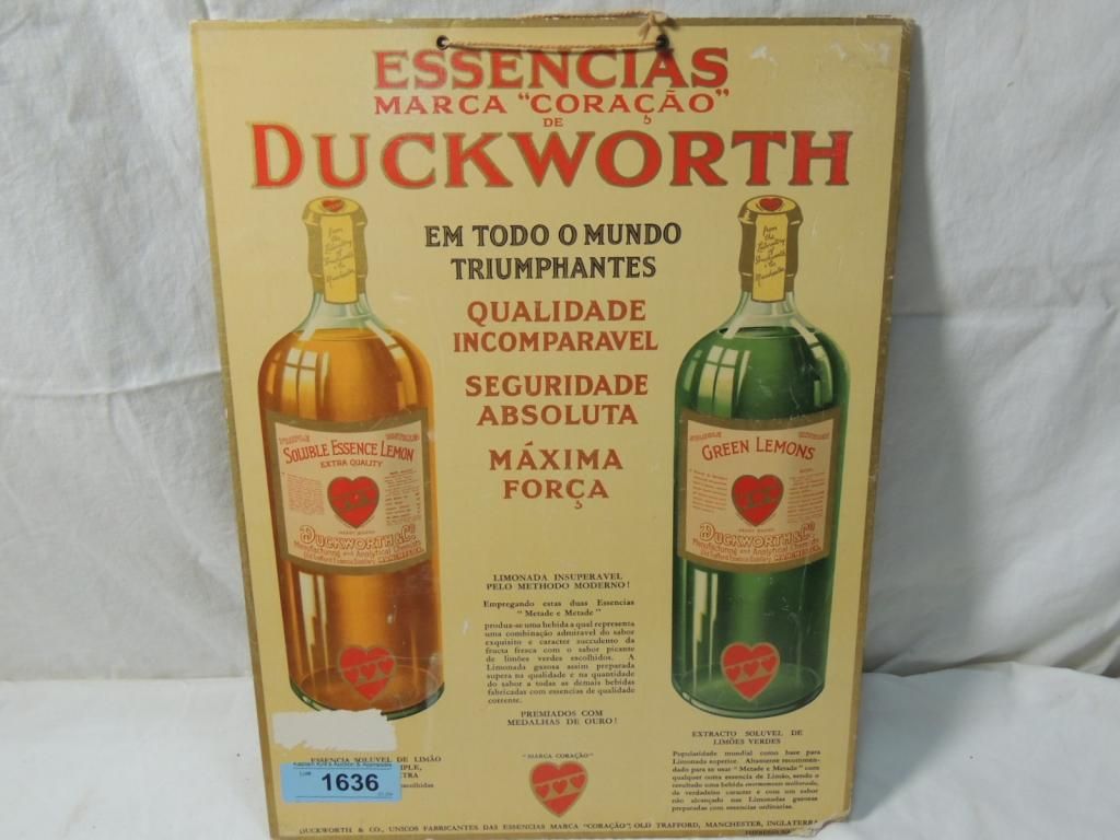 OLD CARD SHOWCARD SHOP SIGN DUCKWORTHS ESSENCES AND COLOURS HEART BRAND SPANISH VERSION SIGN. 13" X 17" VINTAGE ADVERTISEMENT. VINTAGE SIGNS. AS SHOWN. SEE PHOTO FOR MORE DETAILS