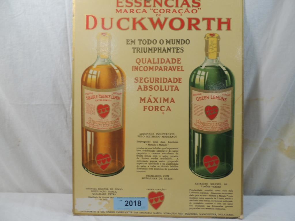 OLD CARD SHOWCARD SHOP SIGN DUCKWORTHS ESSENCES AND COLOURS HEART BRAND SPANISH VERSION SIGN. 13" X 17" VINTAGE ADVERTISEMENT. VINTAGE SIGNS. AS SHOWN. SEE PHOTO FOR MORE DETAILS