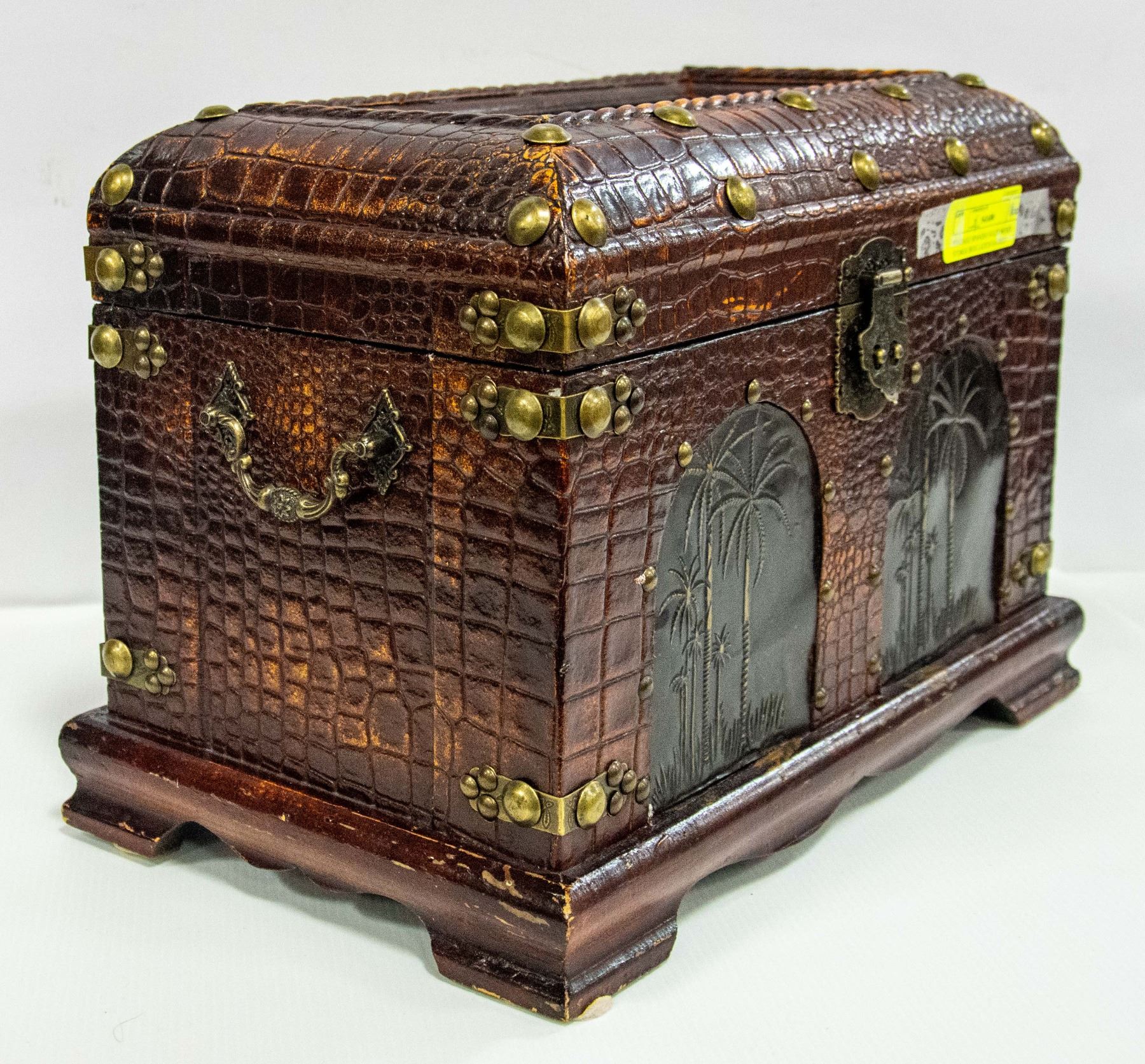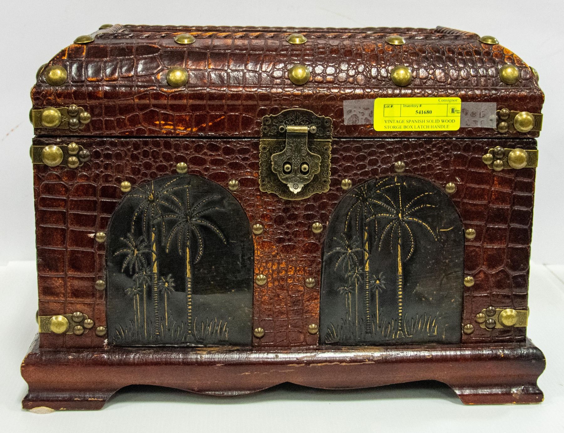 VINTAGE SPANISH SOLID WOOD STORGE BOX LATCH AND HANDLES 15" WIDE BY 9" DEEP