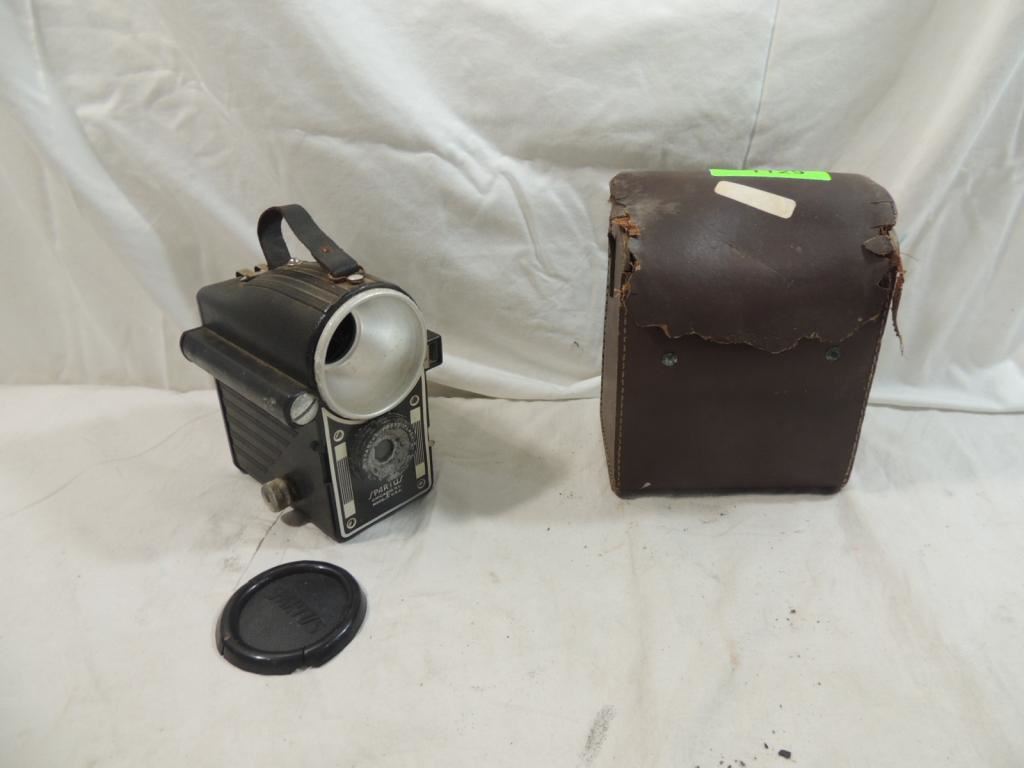 SPARTUS PRESS FLASH CAMERA, VINTAGE CAMERA, COLLECTIBLE CAMERA WITH ORIGINAL CASE AS SHOWN SEE PHOTO FOR MORE DETAILS.
