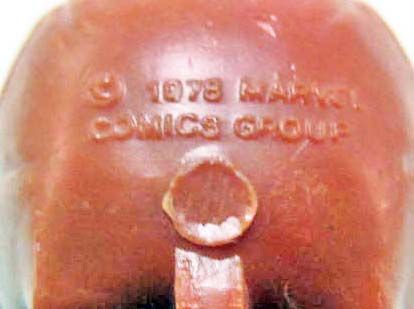 Back of the head is marked 1979 Marvel Comics Group. Side is marked with US Patent and Made in Hong Kong. Approx. 4" tall