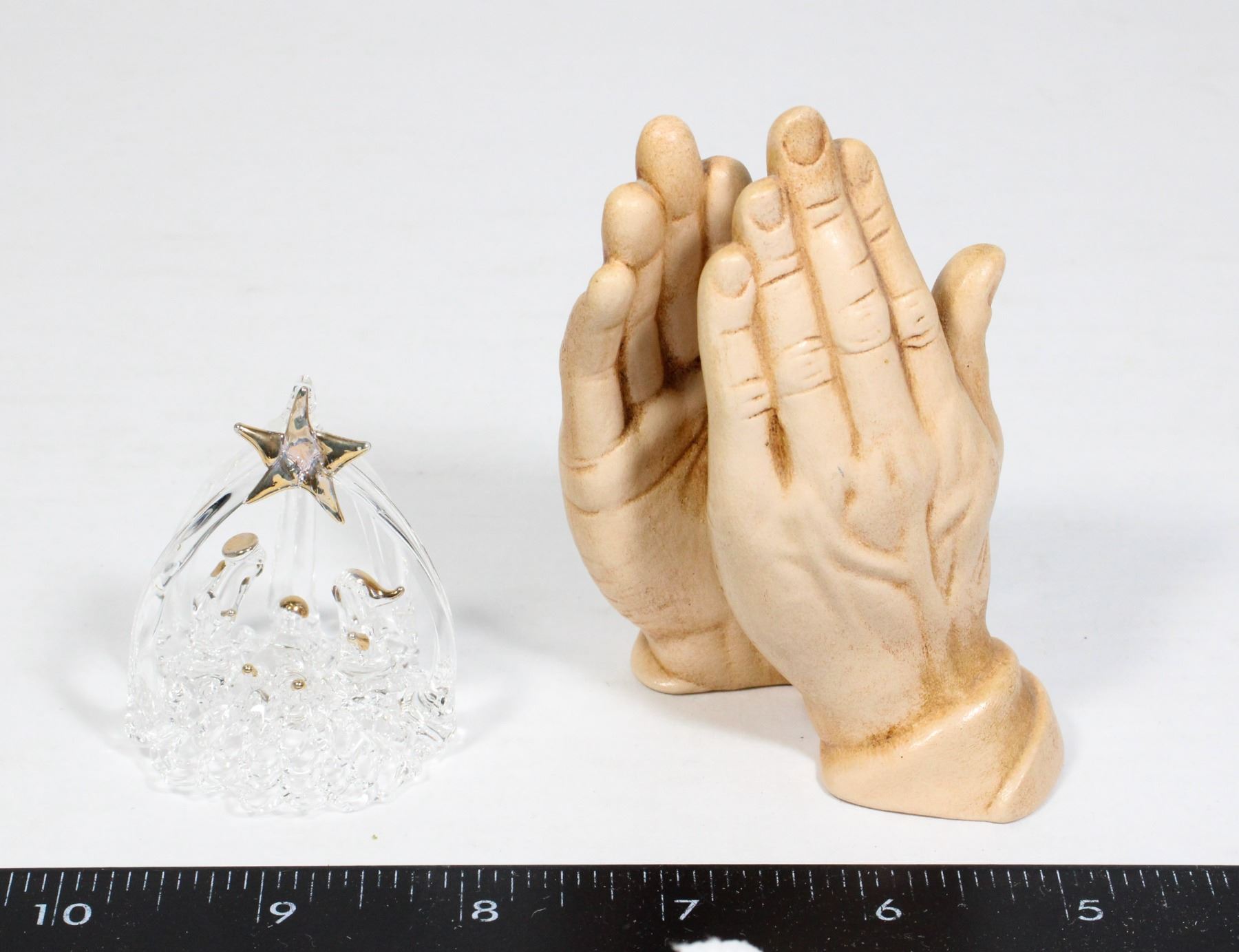 PAIR OF CERAMIC PRAYING HANDS (CHIP ON RIGHT HAND SLEEVE CUFF) SIGNED ME