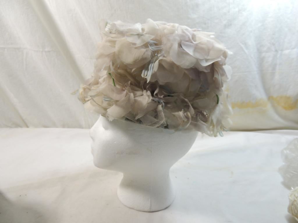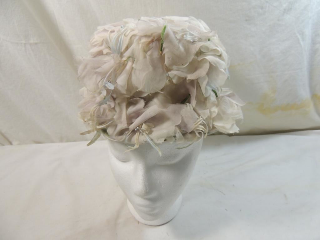 PURPLE SPRING FLORAL HAT, DECORATIVE HAT DESIGNER HAT AS SHOWN SEE PHOTO FOR MORE DETAILS.