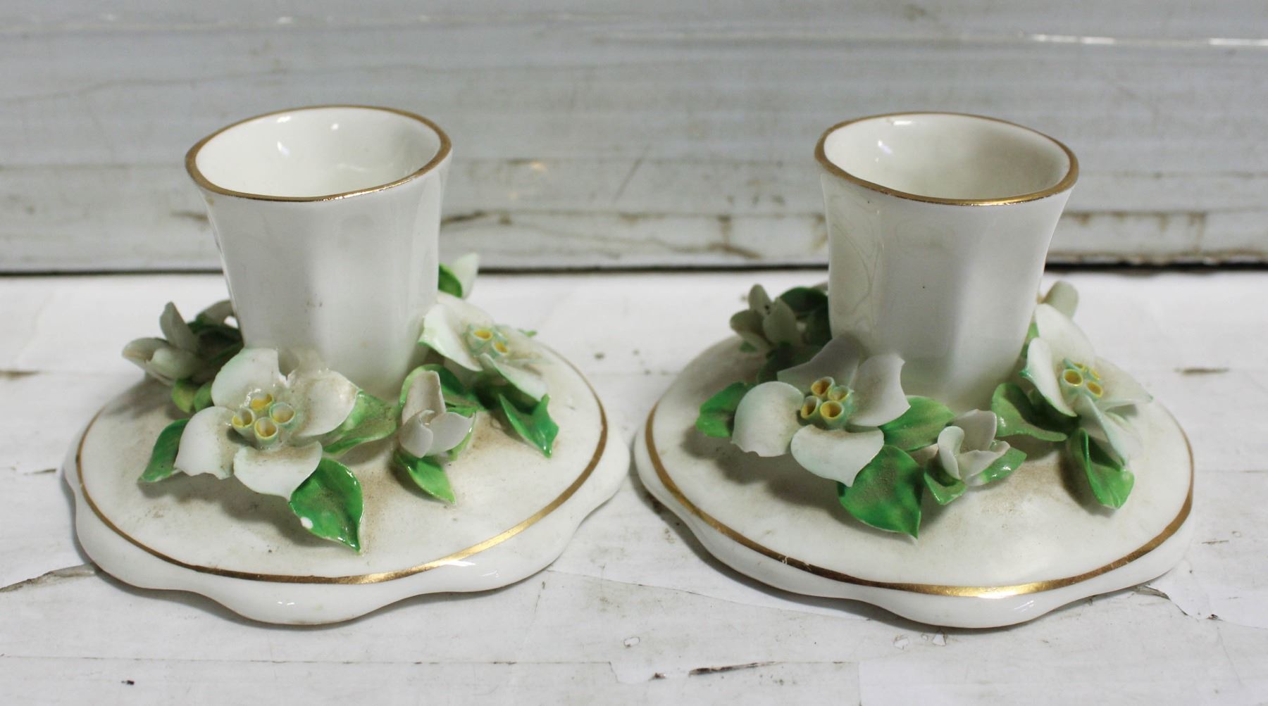 VINTAGE STAFFORDSHIRE BONE CHINA CANDLE HOLDERS