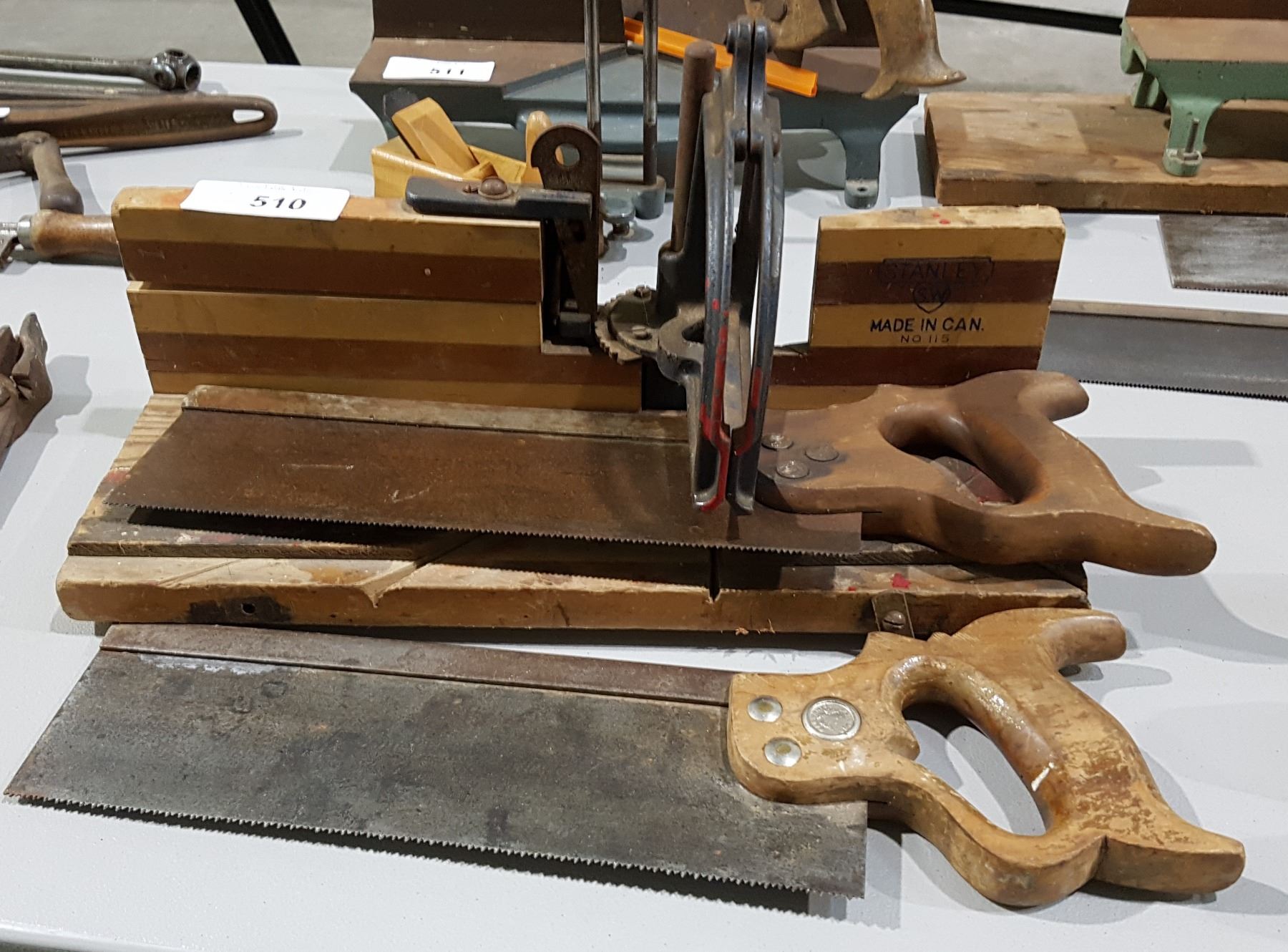 VINTAGE STANLEY MITRE BOX WITH SAWS