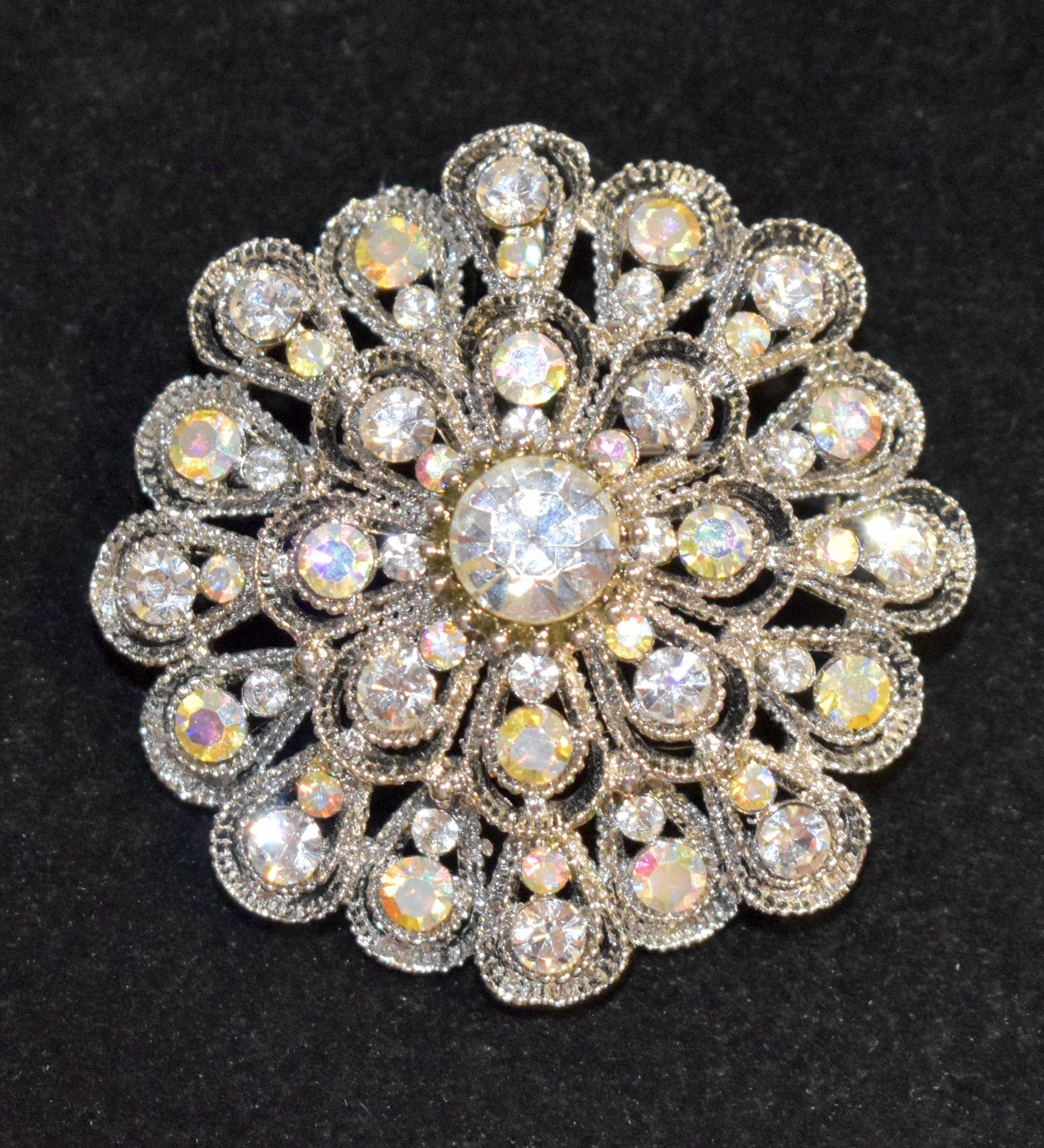 VINTAGE STARBURST BROOCH WITH IRIDESCENT STONES
