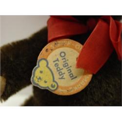 VINTAGE STEIFF JOINTED TEDDY BEAR. Brown color. Marked with label on chest and original tag on left ear. Number on tag on ear is marked 5322,2. Tag around neck is marked "Winnie". Excellent condition. 22 cm.