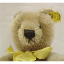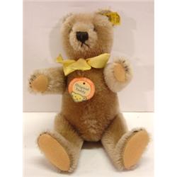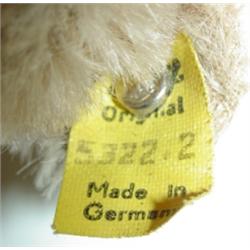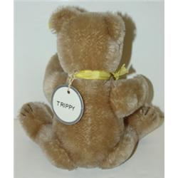 VINTAGE STEIFF JOINTED TEDDY BEAR. Light brown color. Marked with label on chest and original tag on left ear. Number on tag on ear is marked 5322,2. Tag around neck is marked "Trippy". Excellent condition. 22 cm.