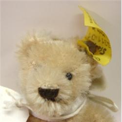 VINTAGE STEIFF JOINTED TEDDY BEAR. White color. Marked with label on chest and original tag on left ear. Number on tag on ear is marked 5311,01. Tag around neck is marked "Tani". Excellent condition. 11 cm.