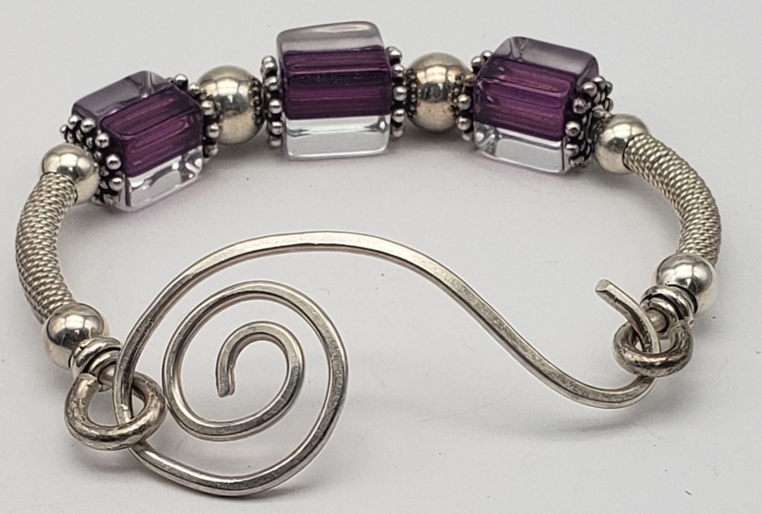 BEADS. SCROLL WORK ATTACHED FOR CLOSURE. TOTAL 14.6 DWT