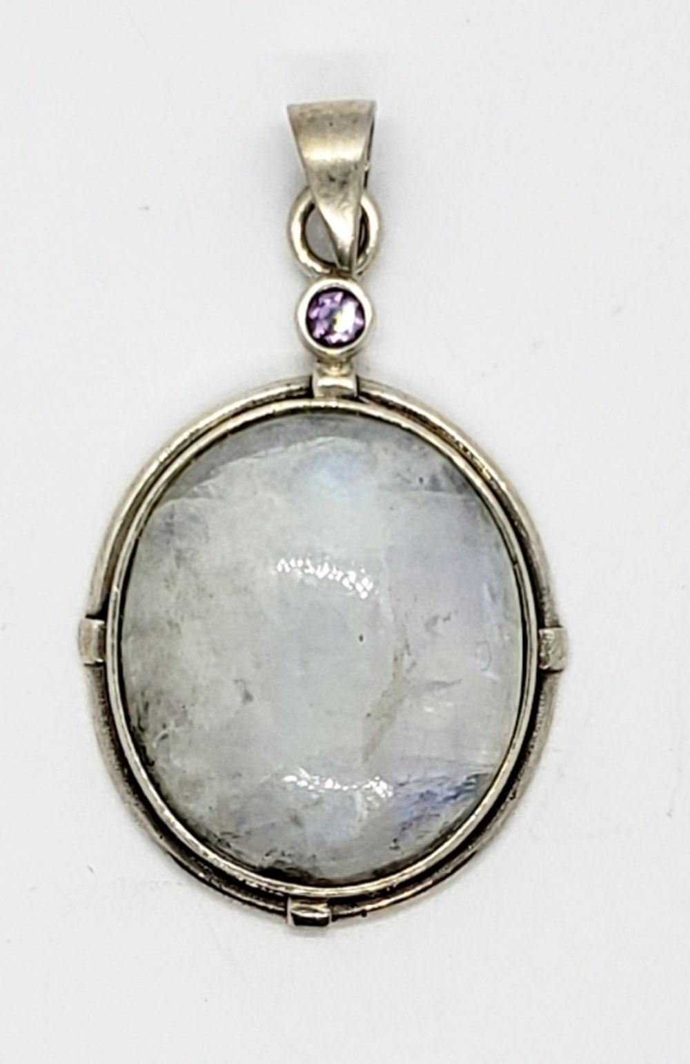 WHITE/LIGHT BLUE CENTER STONE. TOTAL 7.1 DWT