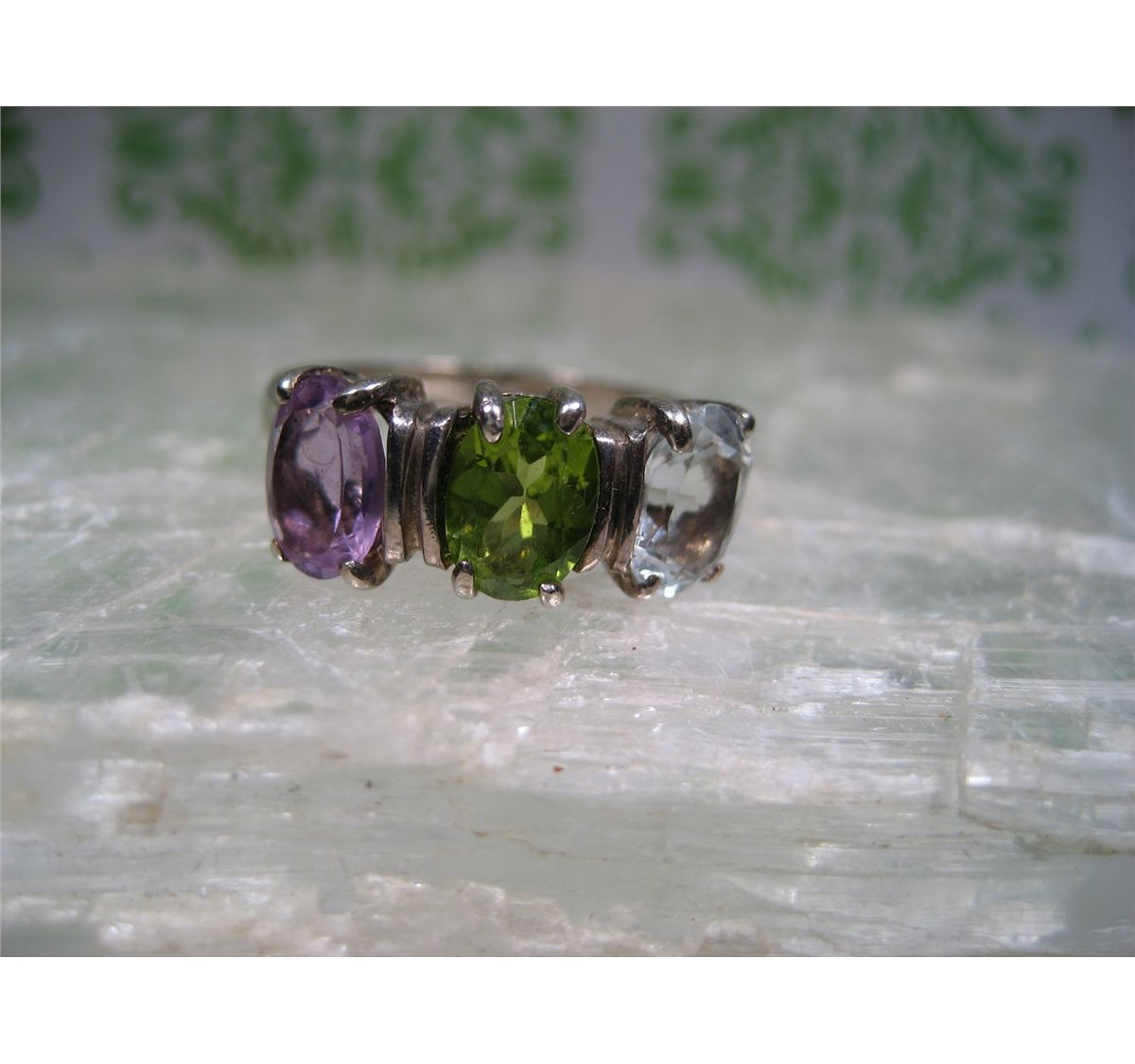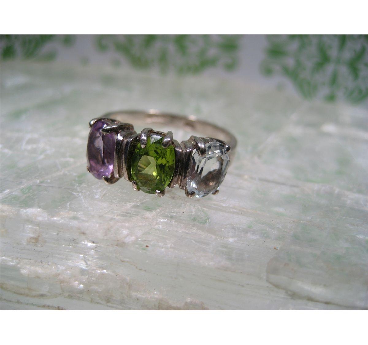 (1) VINTAGE STERLING SILVER 925 COLORED STONES MOTHERS RING T.W. 3.3 GRAMS RING 6