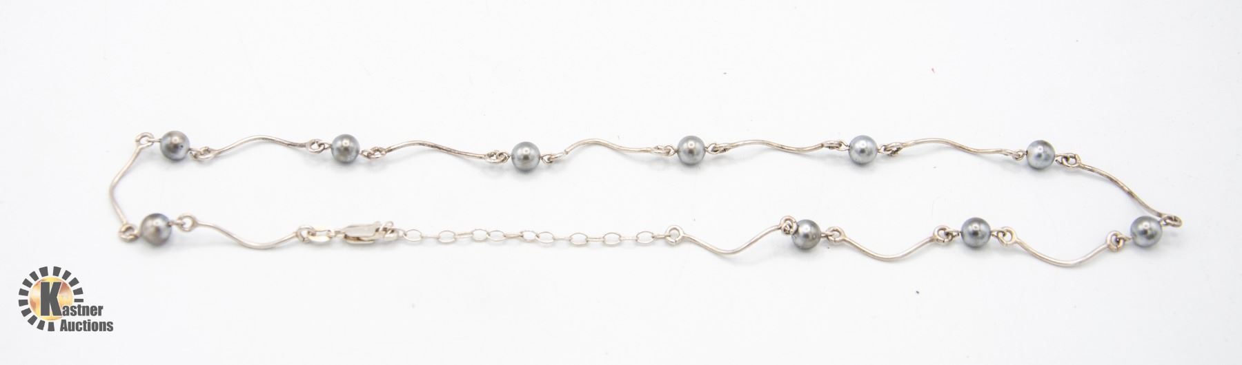 VINTAGE STERLING SILVER PEARL NECKLACE, 18 INCHES