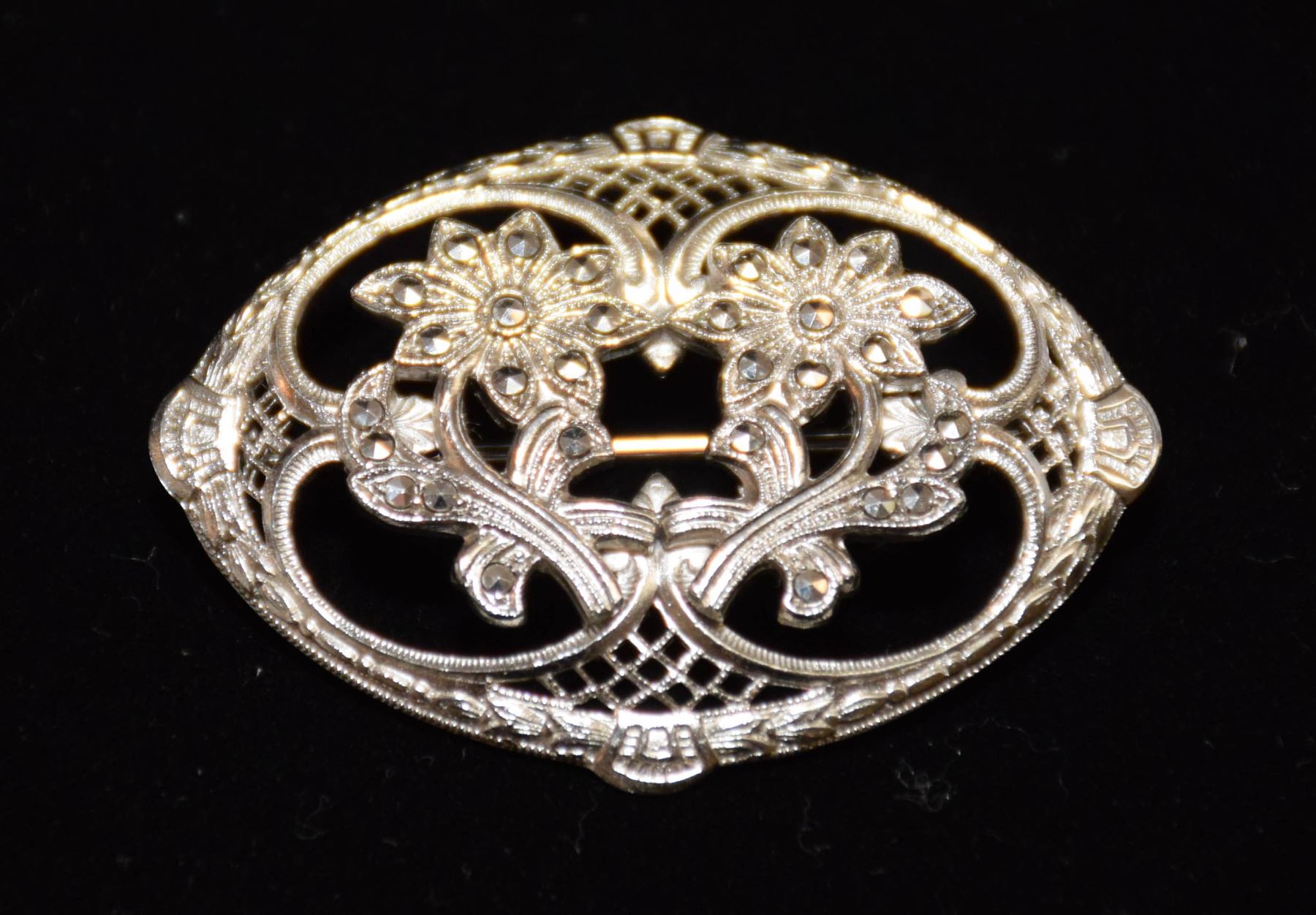VINTAGE STERLING STAMPED MARCASITE GEM BROOCH