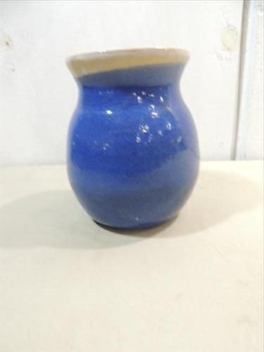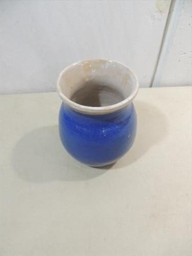 VINTAGE STONEWARE BLUE GLAZE VASE MARKED: SE85. 7"H. AS SHOWN. VIEW PICTURE FOR DETAIL.