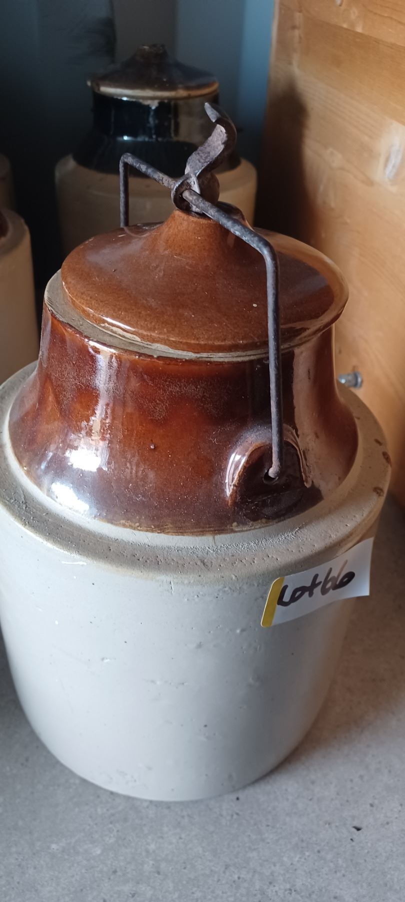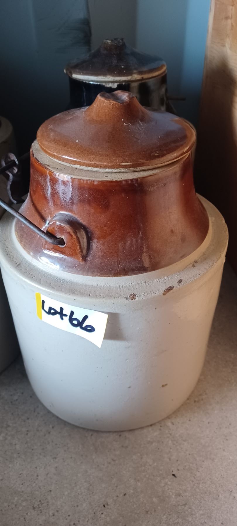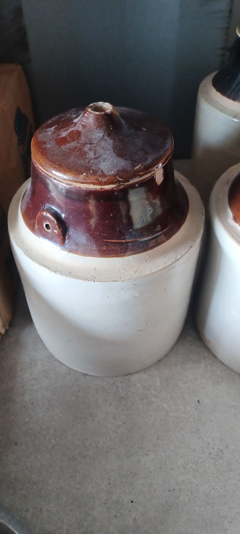 VINTAGE STONEWARE CROCK 2 COMPLETE AND 2 MISSING HANDLES