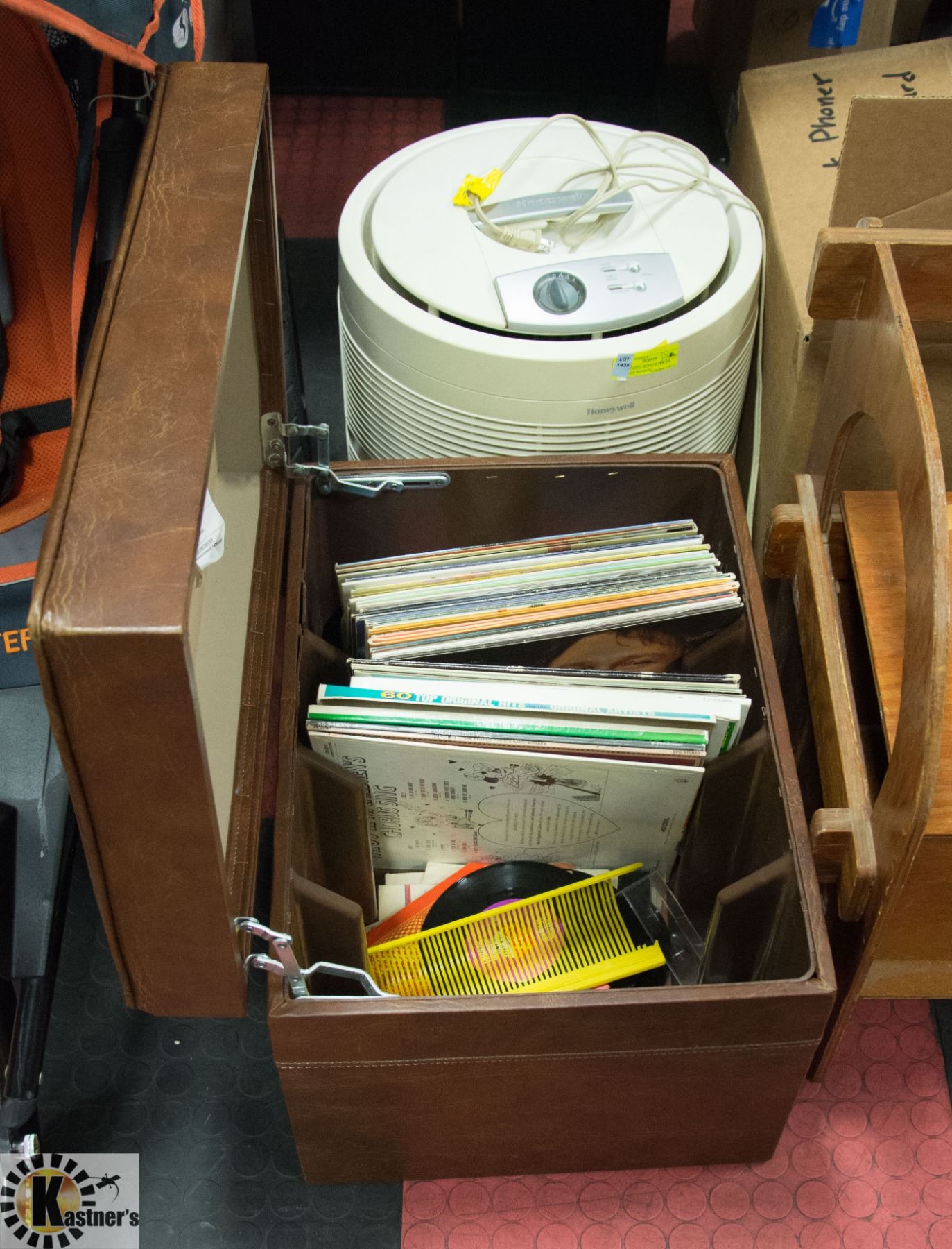 VINTAGE STORAGE TRUNK WITH RECORDS