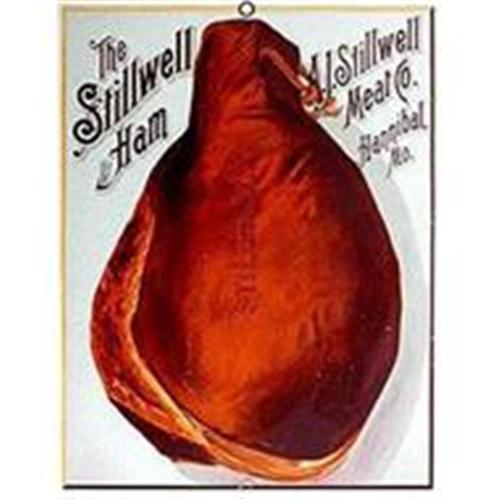 STILLWELL HAM CARDBOARD SIGN -- c1900, cardboard sign, c11? x 14?, pictures giant ham in color, a good general store sign