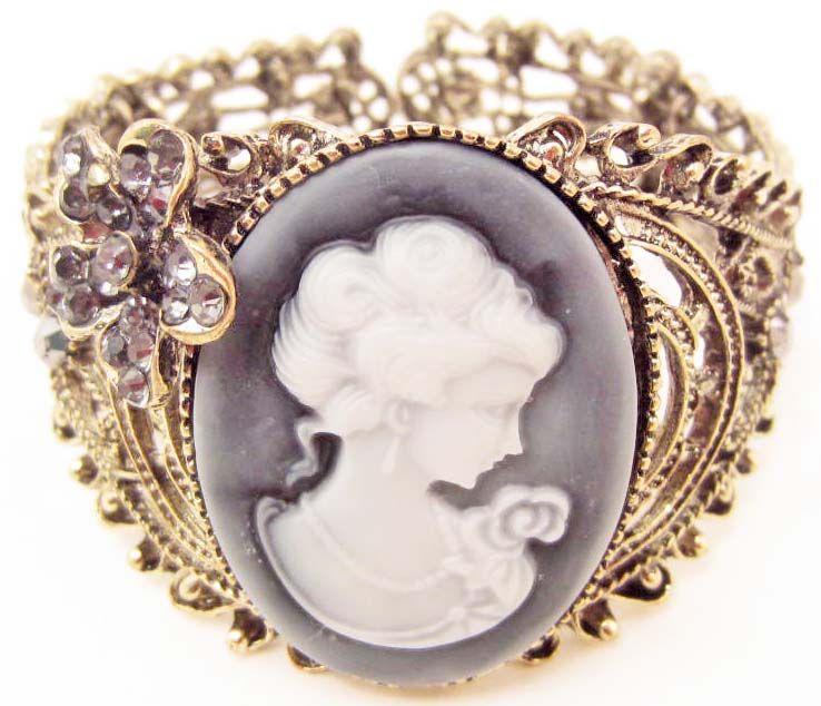VINTAGE STYLE CAMEO AND AUSTRIAN CRYSTAL BANGLE BRACELET