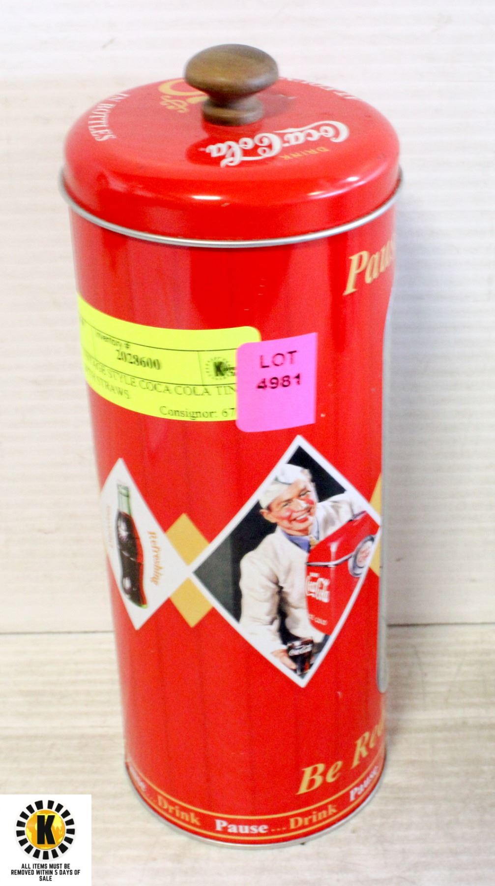VINTAGE STYLE COCA COLA TIN WITH STRAWS