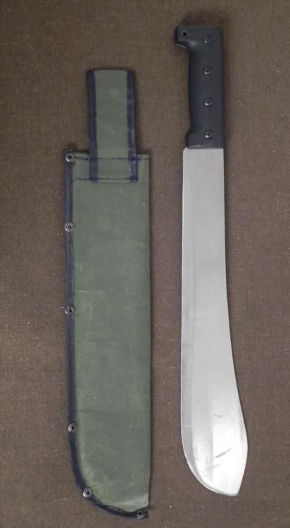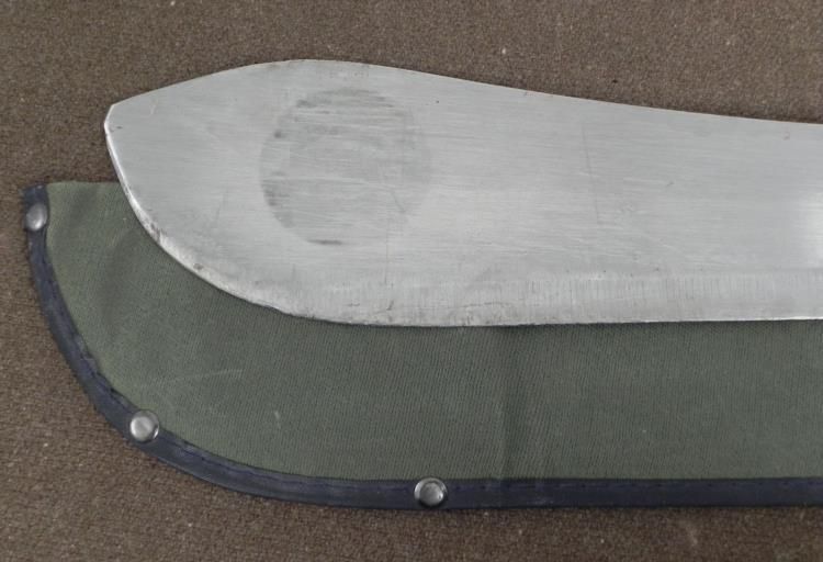 VINTAGE SURVIVAL HATCHET MACHETE W/CANVAS SHEATH 14 3/4" STEEL HATCHET/MACHETE BLADE-UN-MARKED--COMPOSITE GRIP--O/D COLORED SHEATH