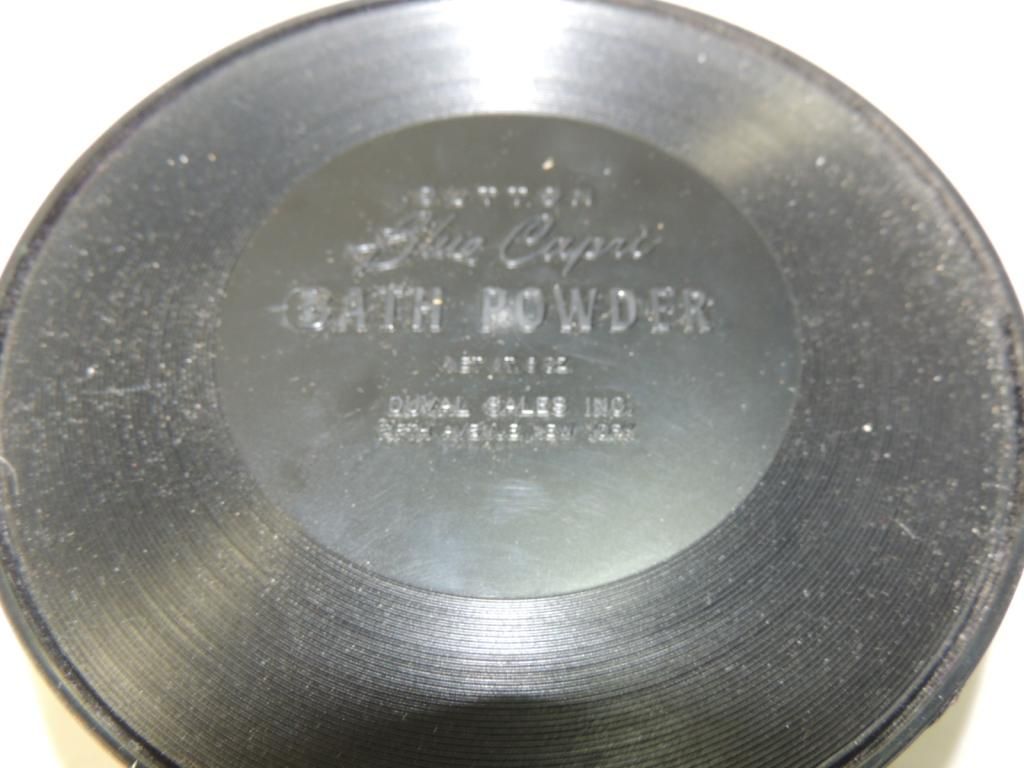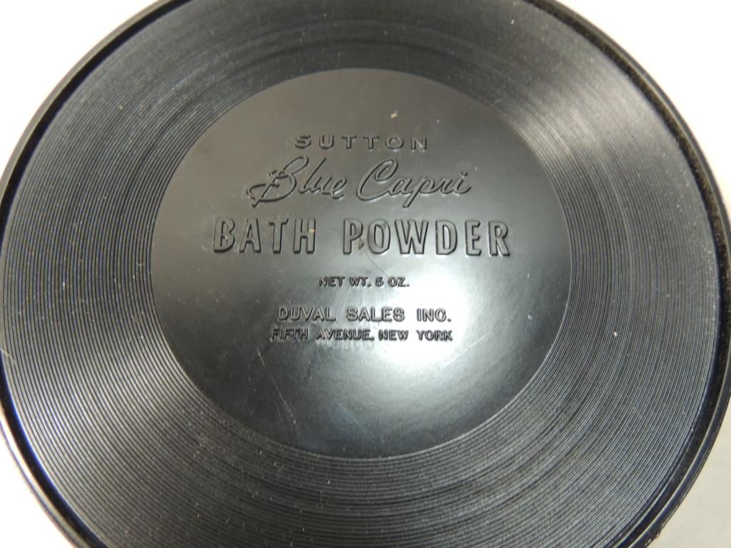 BATH POWDER VINTAGE BLUE CAPRI SUTTON. NEW NEVER OPENED AS SHOWN SEE PHOTO FOR MORE DETAILS.