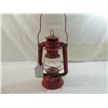 RED METAL AND GLASS LANTERN VINTAGE LANTERN VINTAGE CAMPING TRAVEL LANTERN. AS SHOWN SEE PHOTO FOR MORE DETAILS.