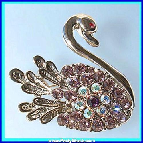 VINTAGE SWAN PIN BROOCH GOLD & SWAROVSKI CRYSTALS<p>Height: .5 Inch