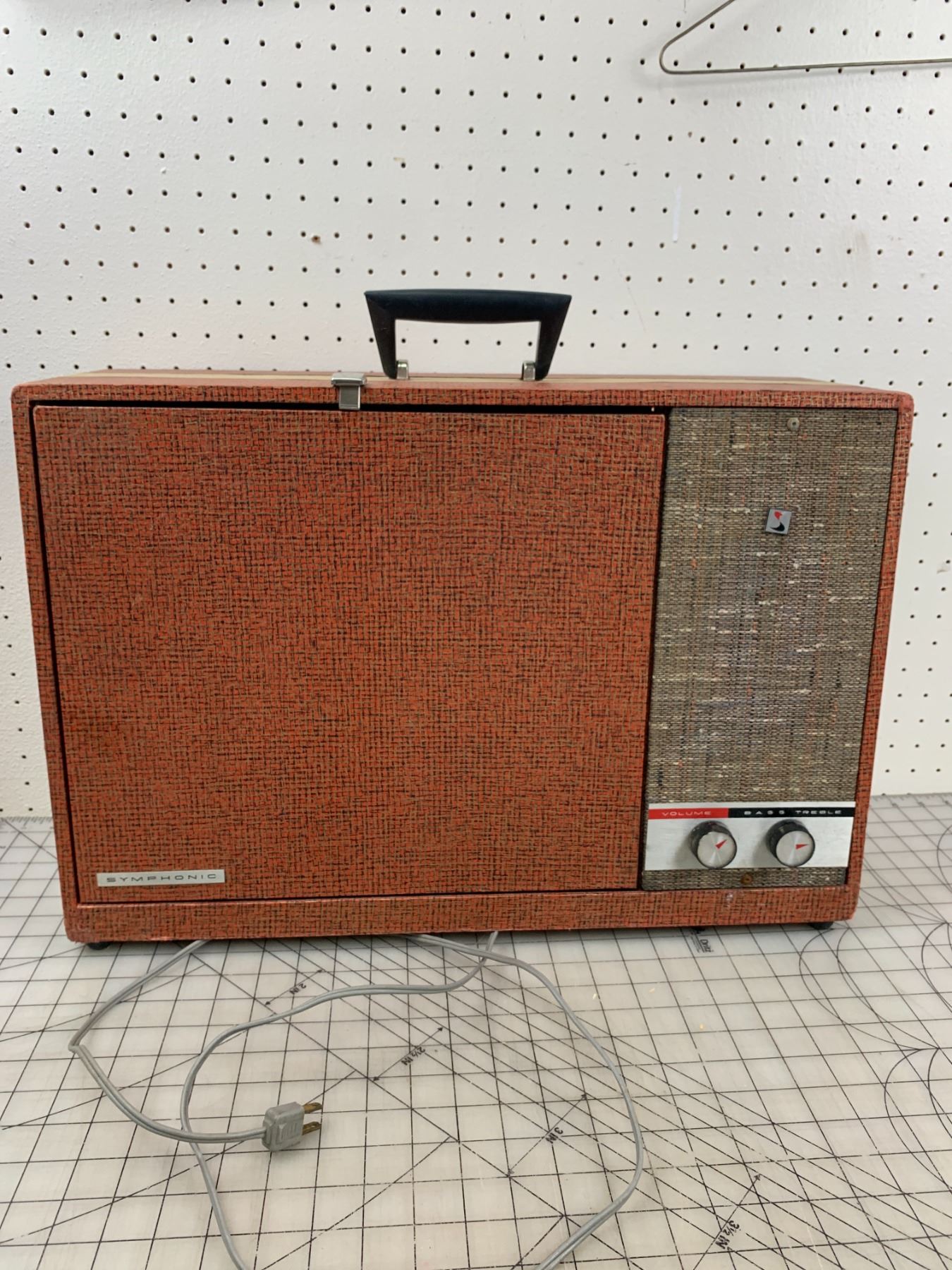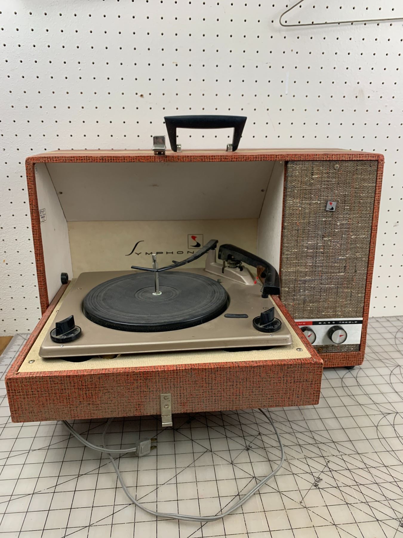VINTAGE SYMPHONIC PORTABLE RECORD PLAYER POWERS ON BUT DOES NOT SPIN