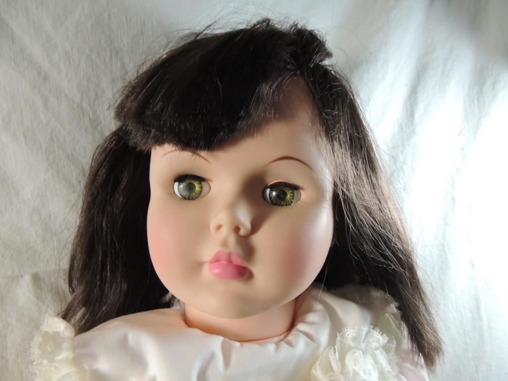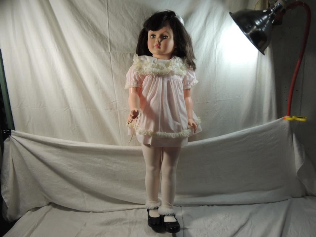 TALL TODDLER DOLL 2T SIZE STANDING PLASTIC DOLL VINTAGE DRESS SHOES, BOW IN HAIR COLLECTIBLE GREAT CONDITION AS SHOWN SEE PHOTO FOR MORE DETAILS.