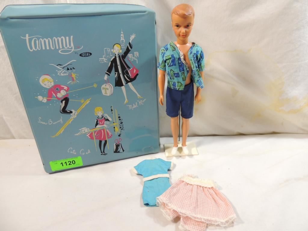 VINTAGE TAMMY DOLL CARRYING CASE AND BUD OR TED DOLL. VINTAGE 1962 DOLL & CARRYING CASE. GOOD CONDITION. COLLECTIBLE VINTAGE TOYS. DRESS UP DOLLS. IDEAL TOY COMPANY. AS SHOWN SEE PHOTO FOR MORE DETAILS.