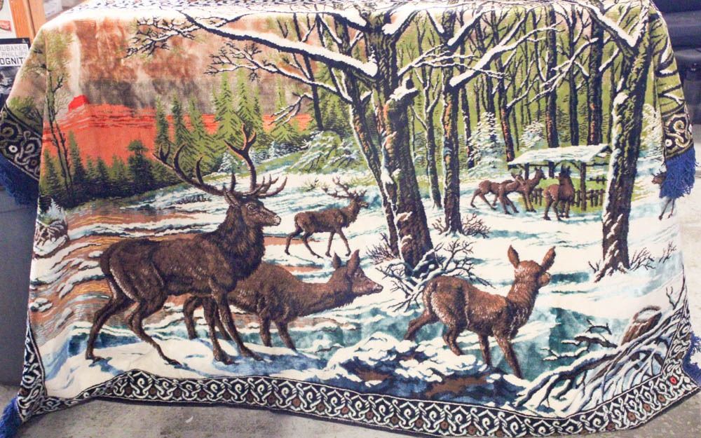 VINTAGE TAPESTRY DEER AT SUNSET 3FT X 6 FT