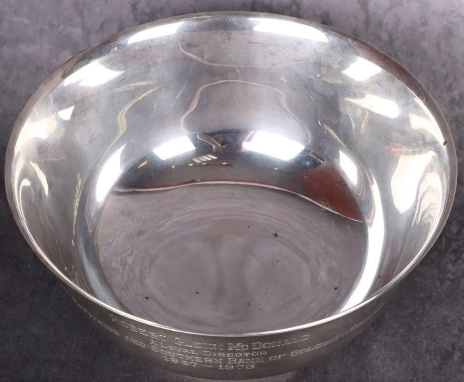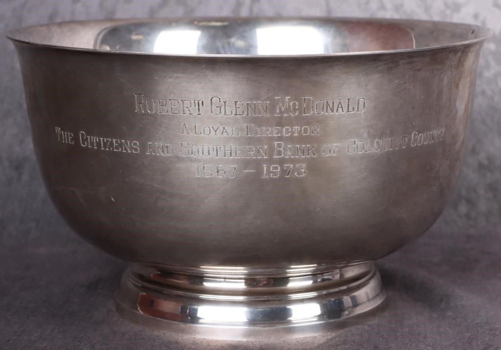 Vintage Tiffany & Co sterling silver bowl w/ inscription "ROBERT GLENN MCDONALD A LOYAL DIRECTOR THE CITIZENS AND SOUTHERN BANK OF COLQUITT COUNTY 1967-1973."