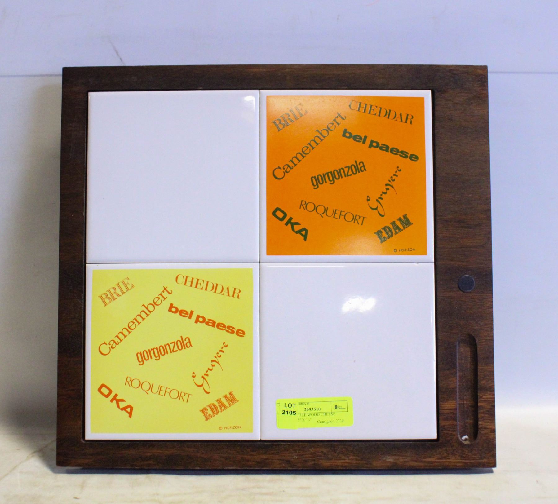 VINTAGE TILE/WOOD CHEESE BOARD- 15" X 14"
