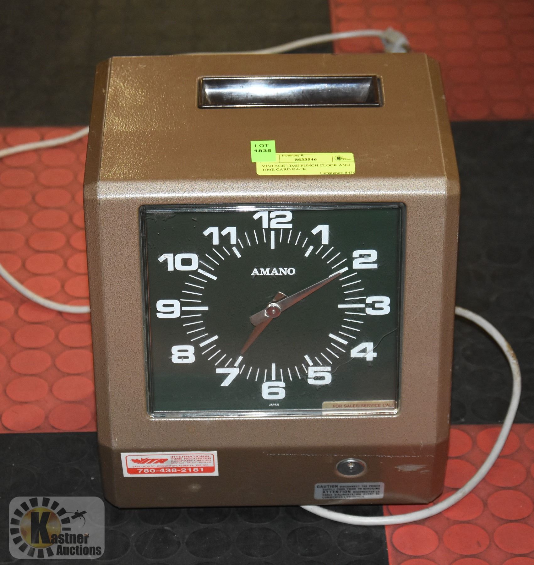VINTAGE TIME PUNCH CLOCK AND TIME CARD RACK