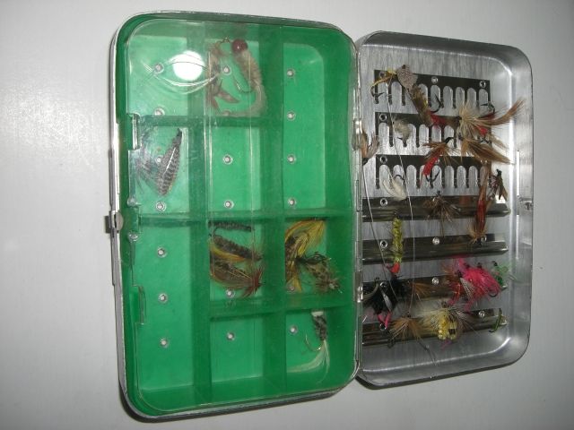 VINTAGE TIN BOX FULL OF APPROX. 35 TOTAL FISHING FLIES!! FLIES CAME OUT OF SAFE!! ***Coin, Currency & All Items Listed in this auction - Grades, Conditions and Values are not Safe Deposit Coins LLC Responsibilty. Grades, Condition and Values are determined by Consigner(s) & Buyers ONLY