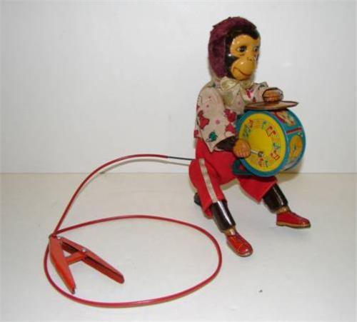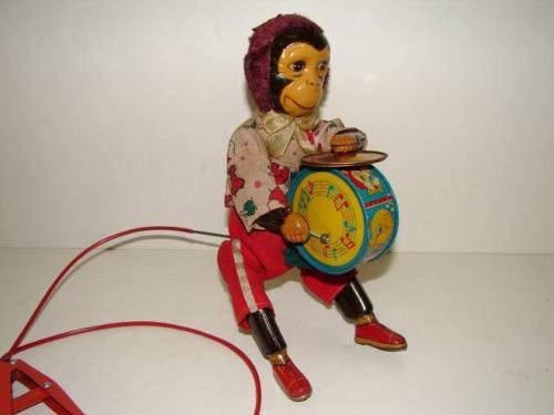 VINTAGE TIN LITHOGRAPH MONKEY DRUMMER. Not functioning. Otherwise excellent condition.