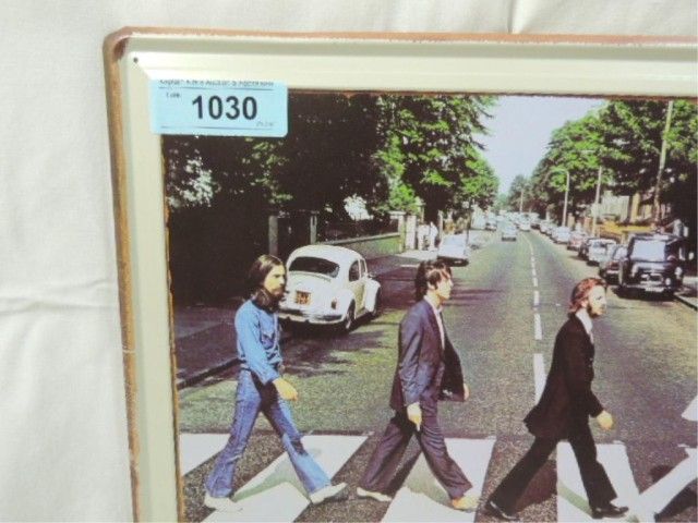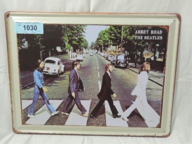 NICE TIN SIGN, BEATLES, 12" X 16". AS SHOWN.