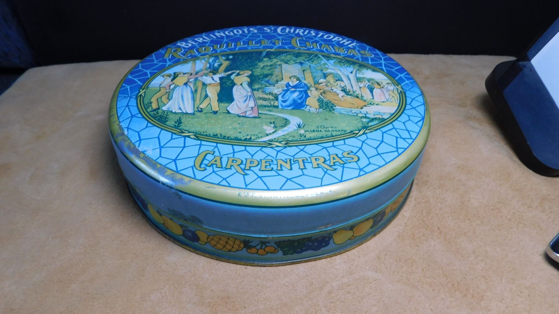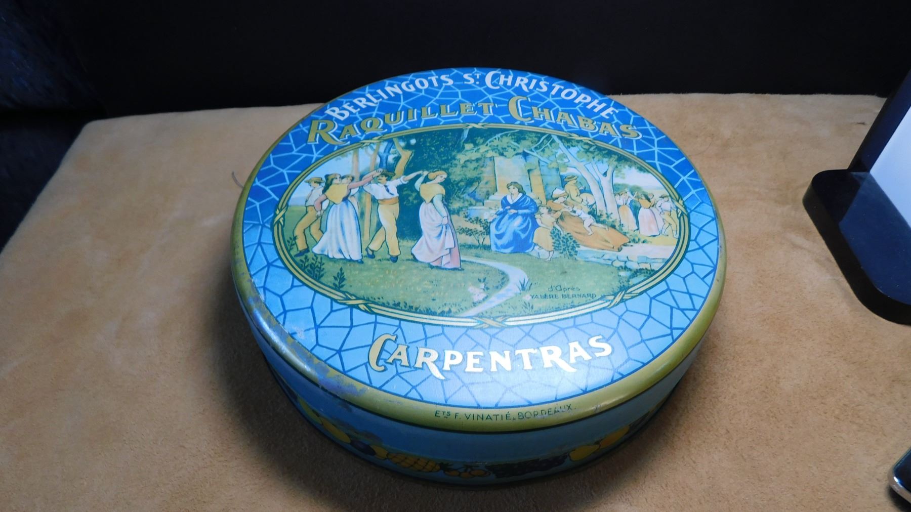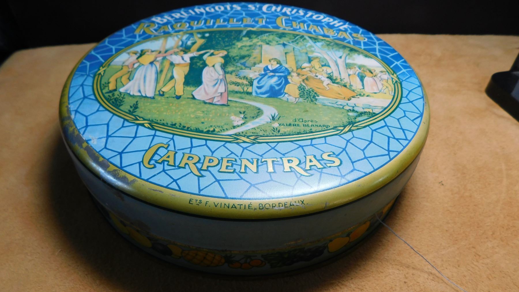 VINTAGE TIN WITH WOODEN SPOOLS AND THREAD