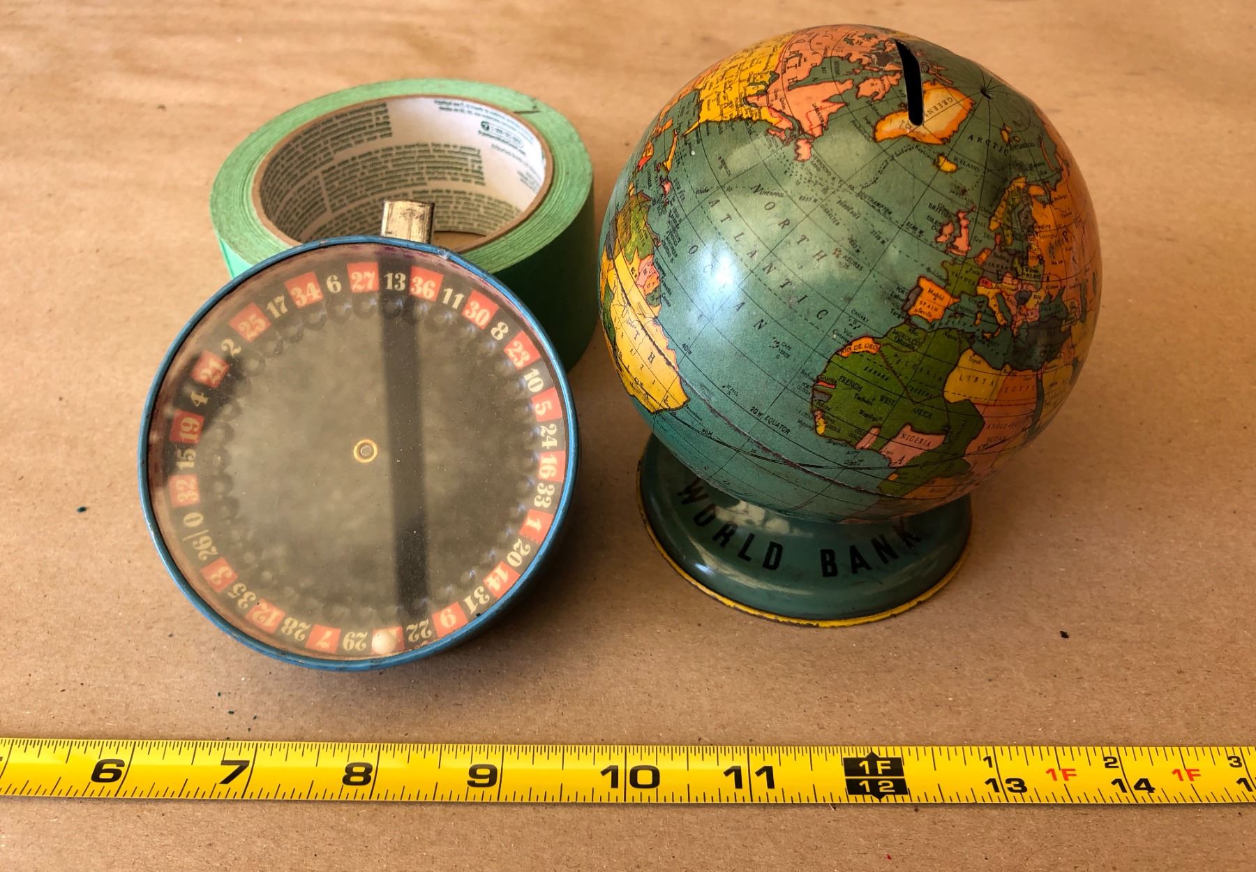 VINTAGE TIN WORLD BANK & ROULETTE GAME