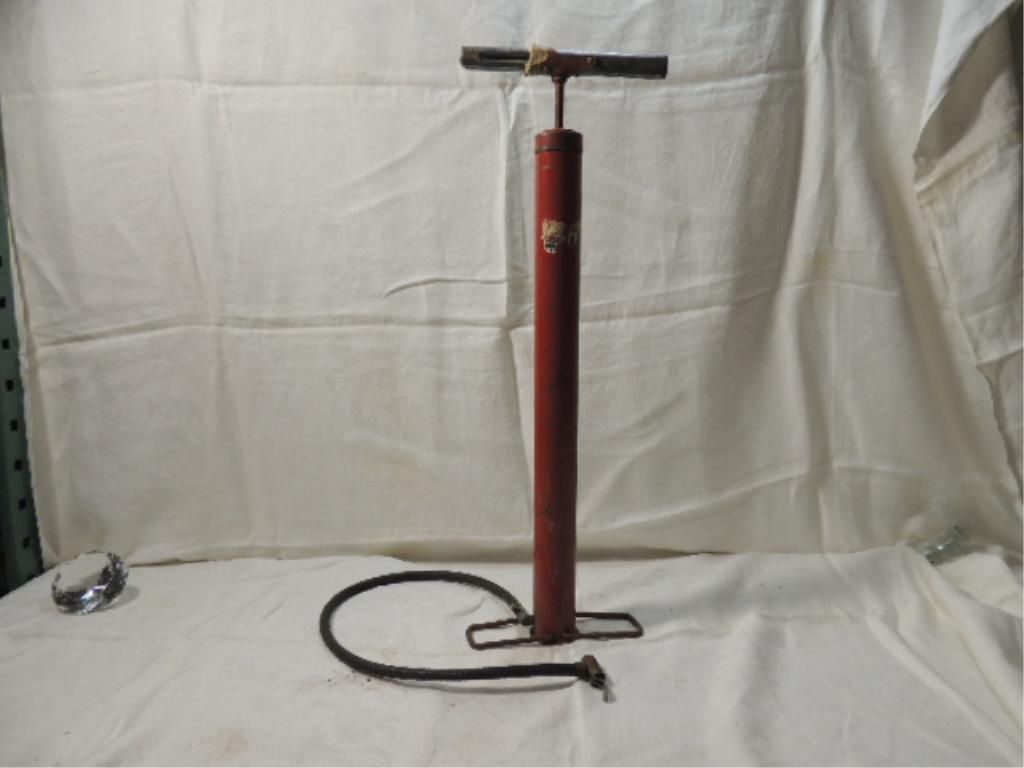 VINTAGE TIRE PUMP. AS SHOWN. SEE PHOTO FOR MORE DETAILS.