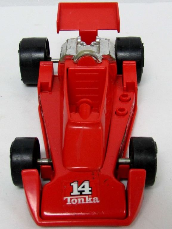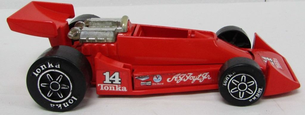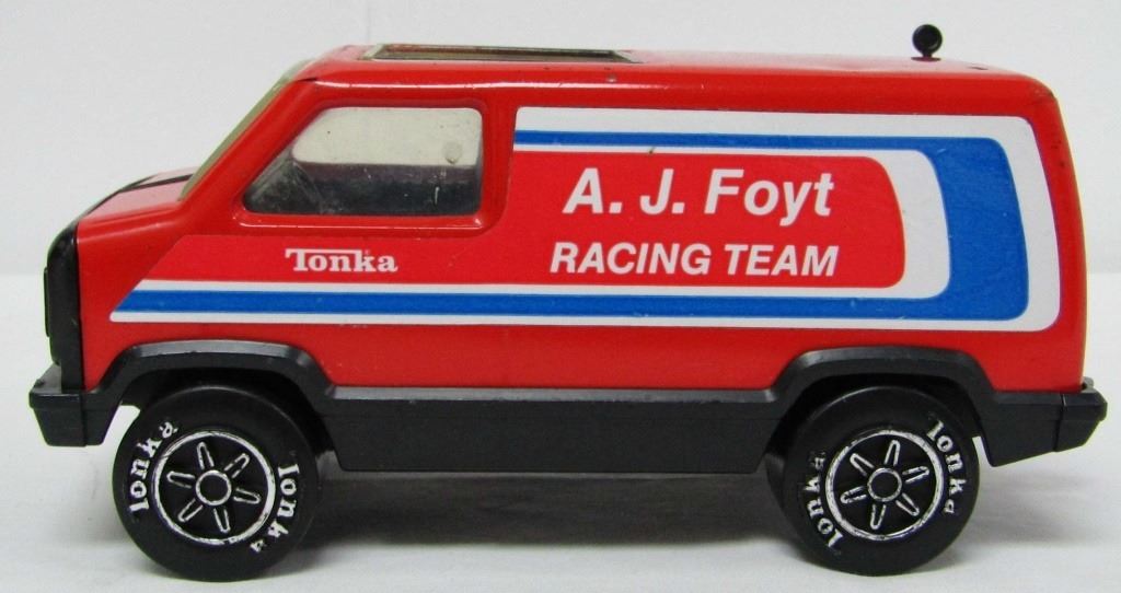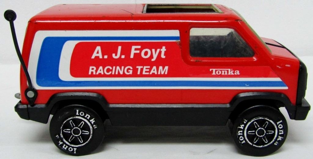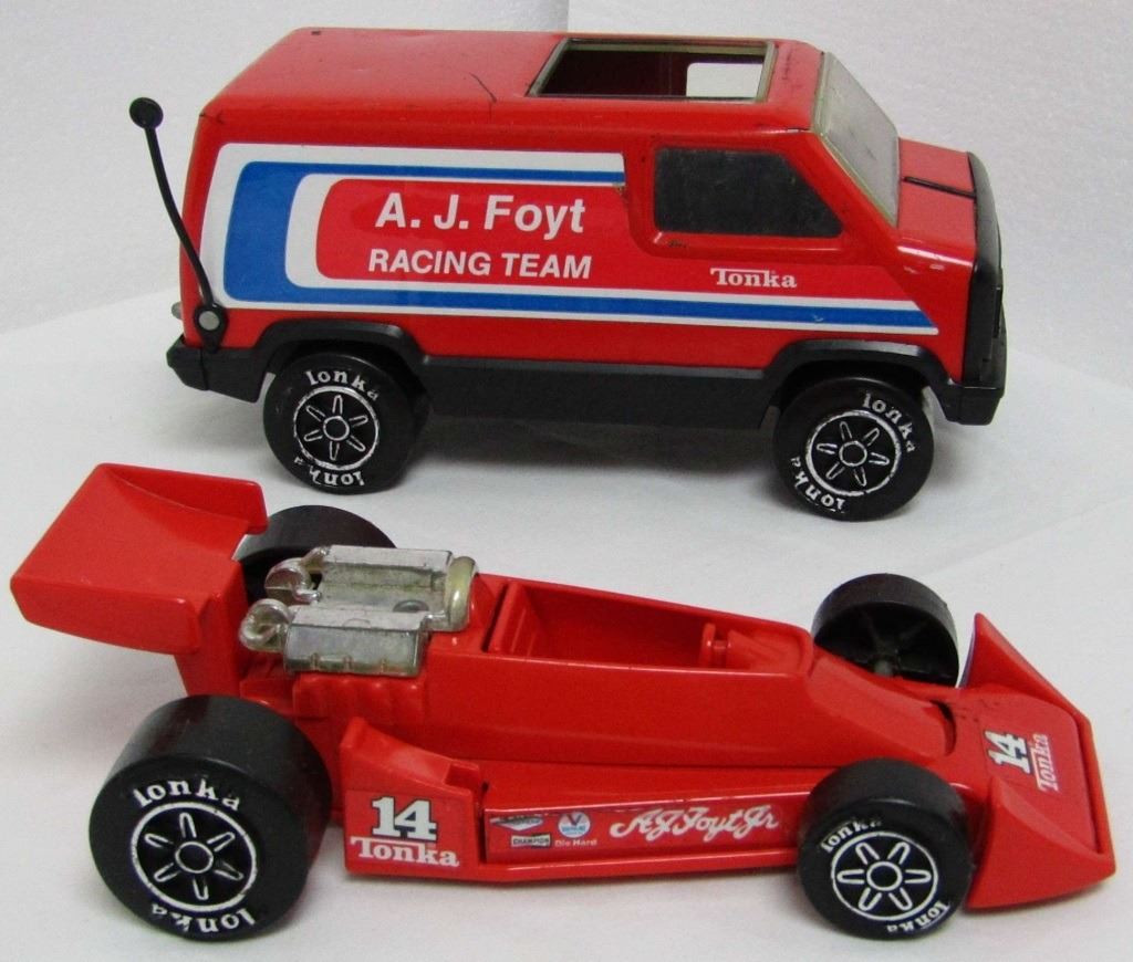 NO TRAILER. HAS SOME CHIPS AND SCRAPES IN THE PAINT. NEEDS A LIGHT CLEANING. THE VAN IS ABOUT 8.5" AND THE INDY CAR IS ABOUT 8".