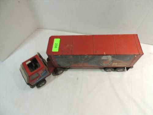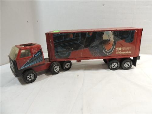 VINTAGE TONKA PRESS METAL SEMI CAB & BOX TRAILER. ADVERT FOR BF GOODRICH TIRES. 22"L. AS SHOWN. VIEW PICTURE FOR DETAIL.