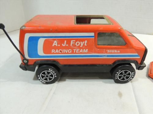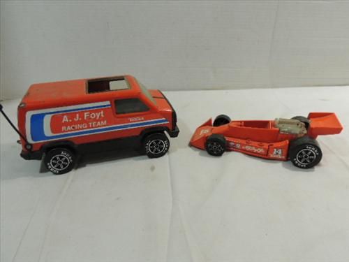 VINTAGE TONKA MATCHING PRESS METAL VAN & AJ FOYT INDY CAR. AS SHOWN. VIEW PICTURE FOR DETAIL.