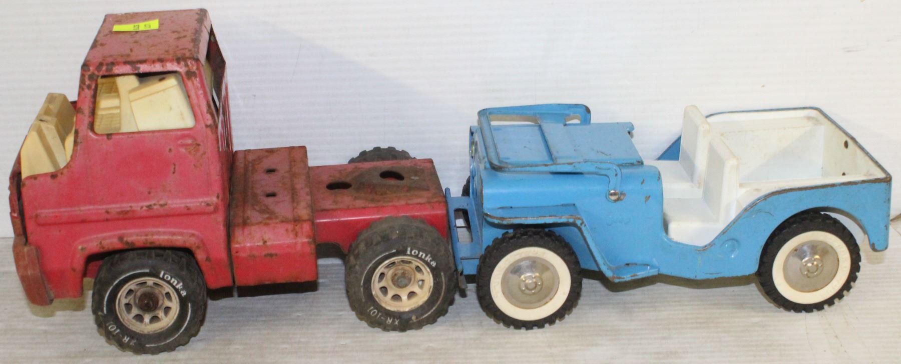VINTAGE TONKA TRACTOR TRUCK AND BLUE JEEP