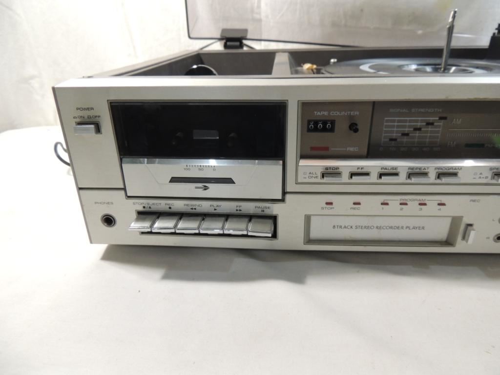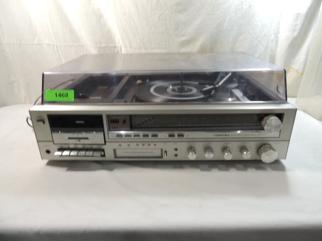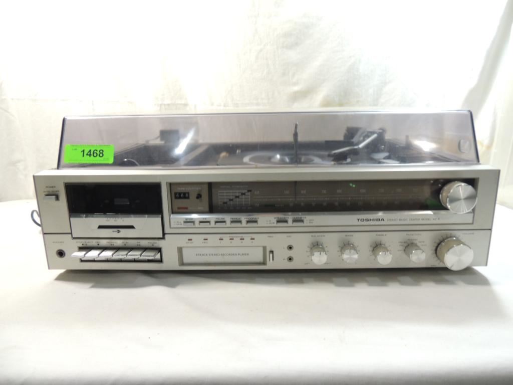 VINTAGE ATRAC, CASSETTE, 8TRACK, AM/FM RADIO TOSHIBA STEREO MUSIC CENTER MODEL AZ-8 VINTAGE ELECTRONICS RECORD PLAYER TAPE PLAYER STERO AS SHOWN SEE PHOTO FOR MORE DETAILS.