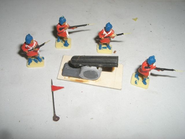 VINTAGE TOY SOLDIERS 4 + 1 CANNON + 1 FLAG TOTAL ENGLISH SOLDIERS *HAND PAINTED & PLASTIC*!! TOY SOLDIERS CAME OUT OF ESTATE!! ***Coin, Currency & All Items Listed in this auction - Grades, Conditions and Values are not Safe Deposit Coins LLC Responsibilty. Grades, Condition and Values are determined by Consigner(s) & Buyers ONLY***
