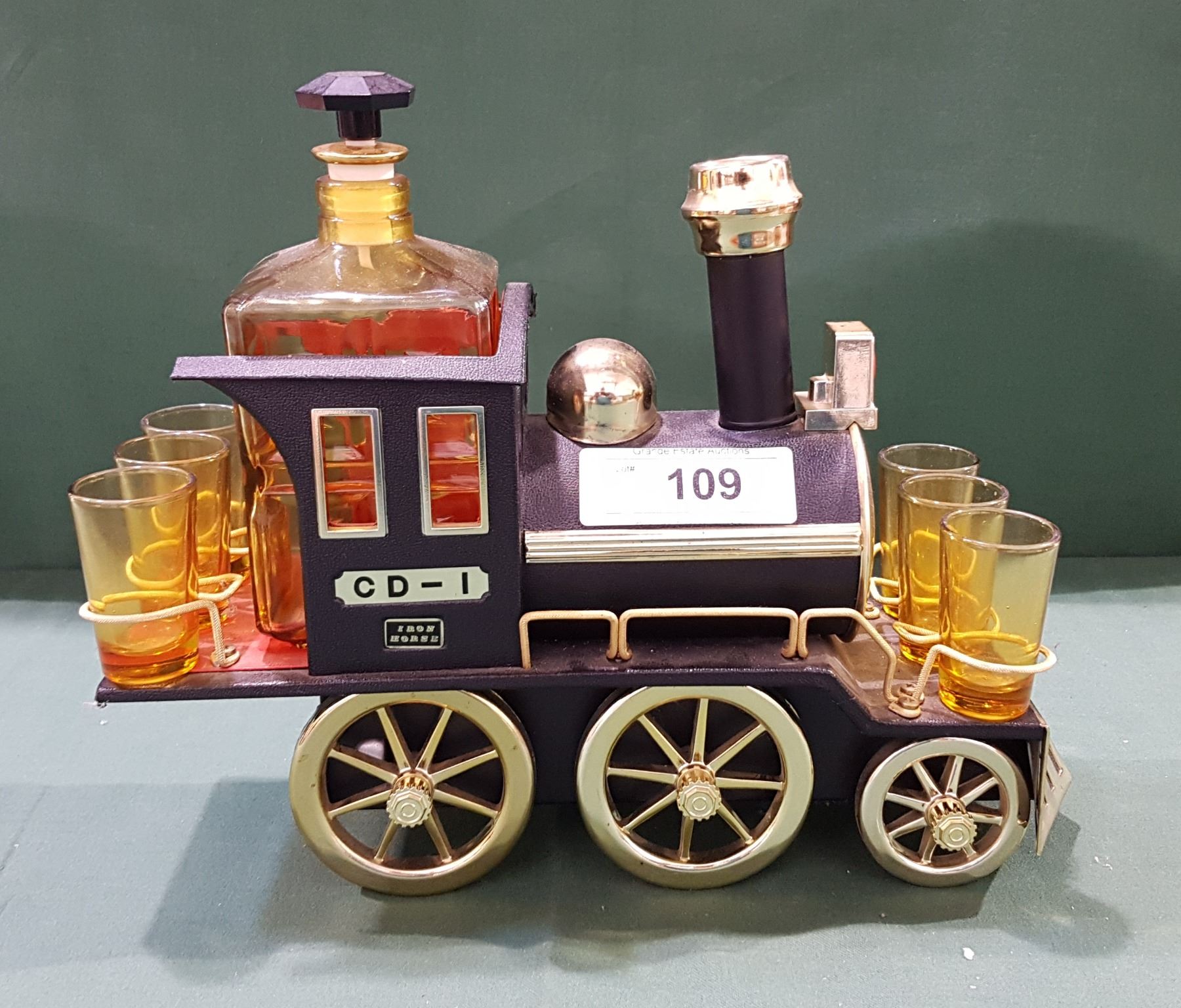 VINTAGE TRAIN LIQUER DECANTER SET
