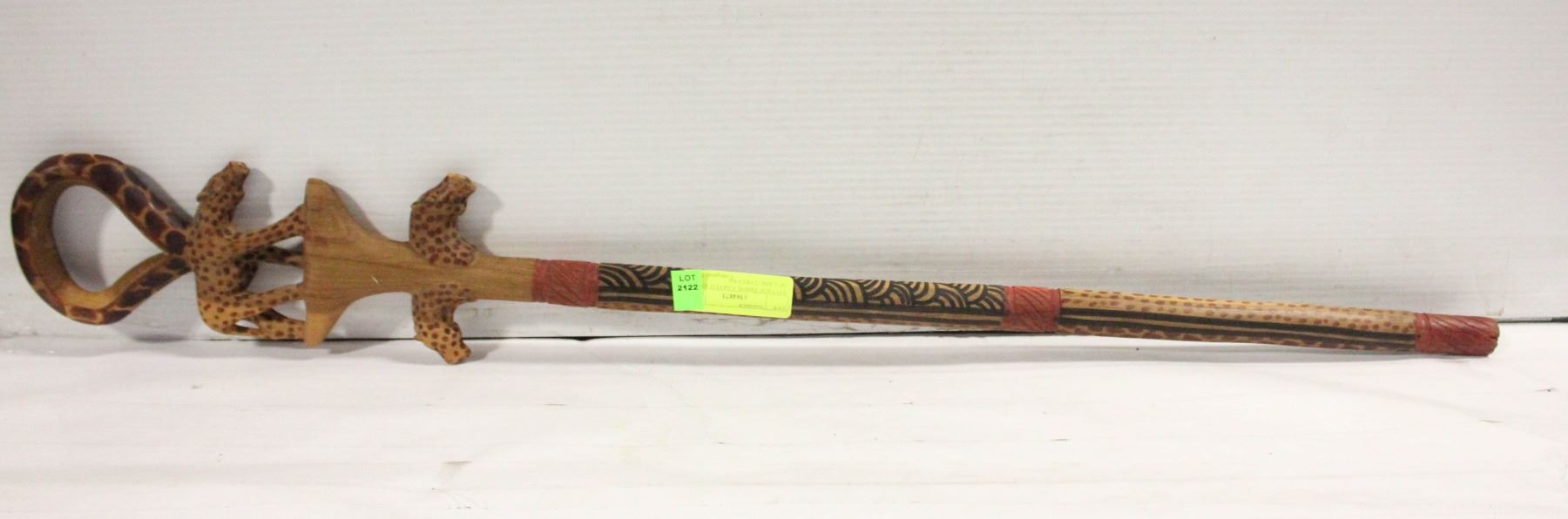 VINTAGE TRIBAL CARVED WOOD 36" CANE- CHEETAH