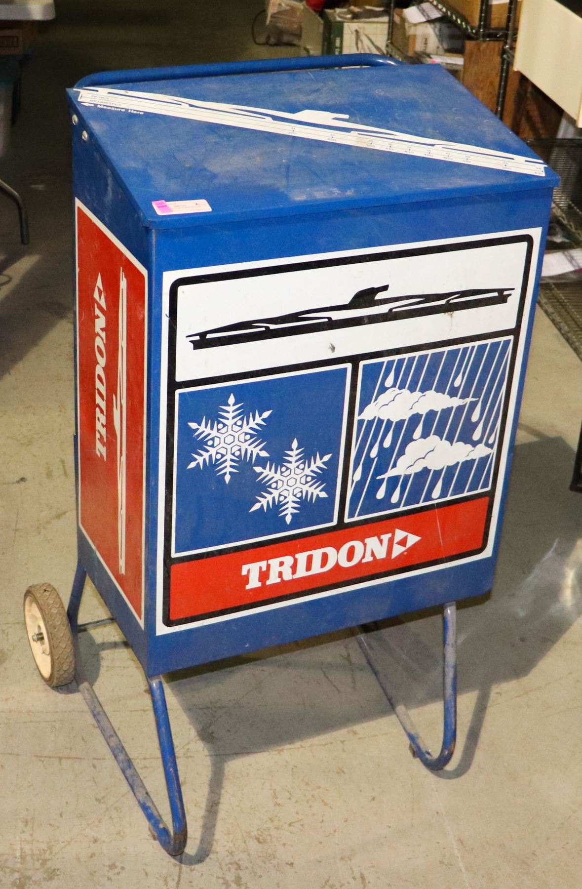 DISPLAY ON WHEELS. APPROX 23" WIDE X 41" TALL X 23" DEEP AT BASE